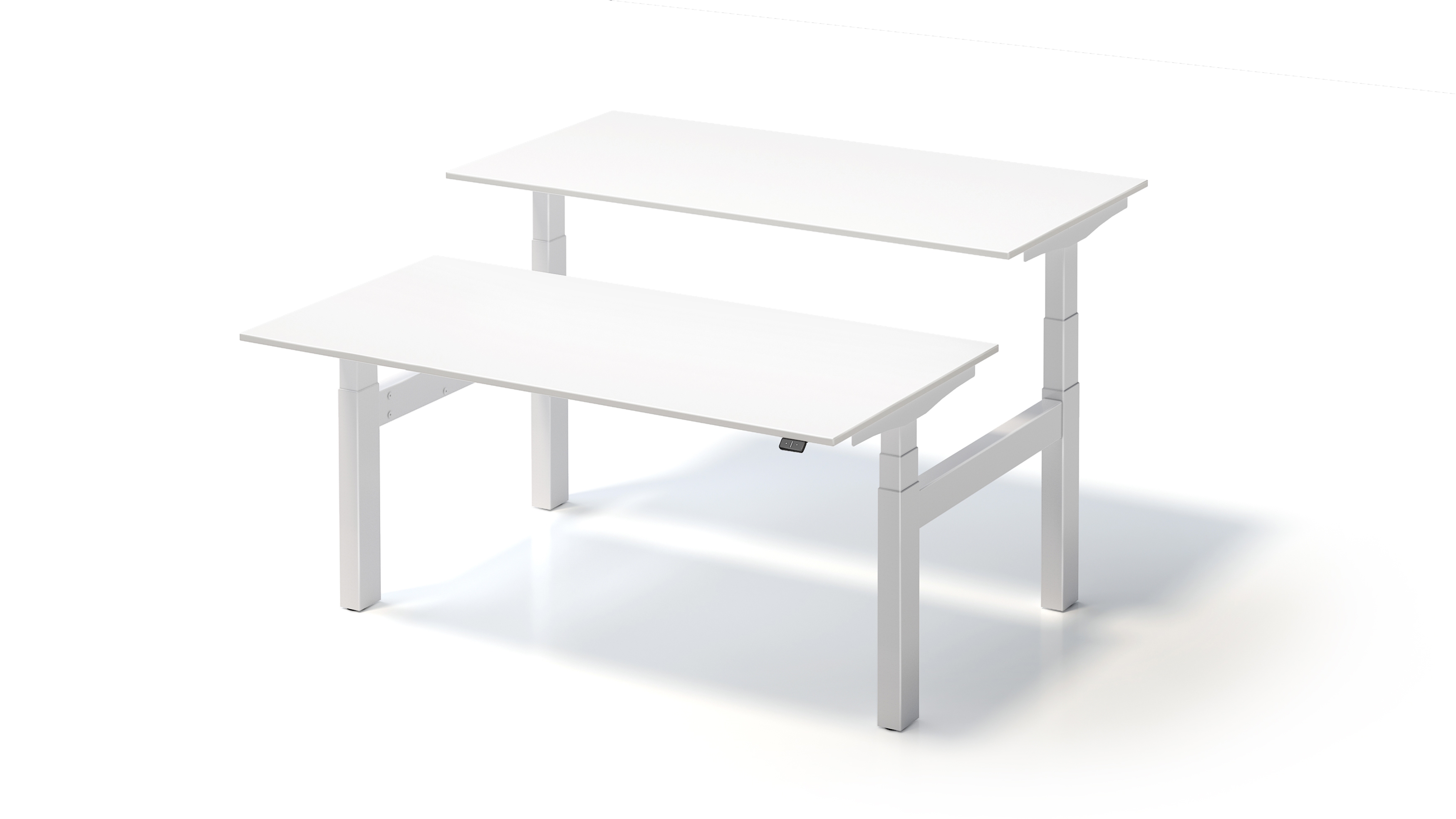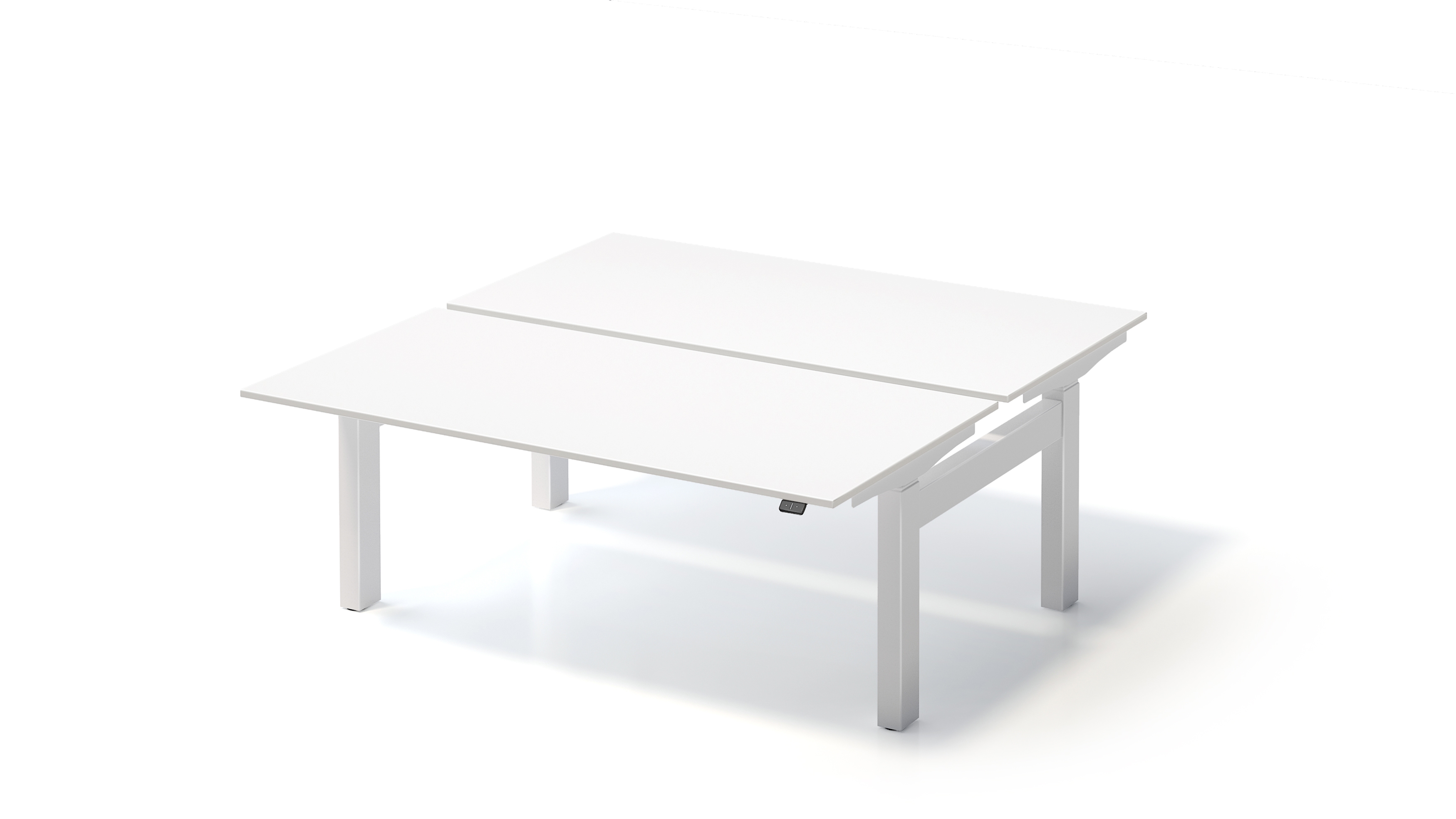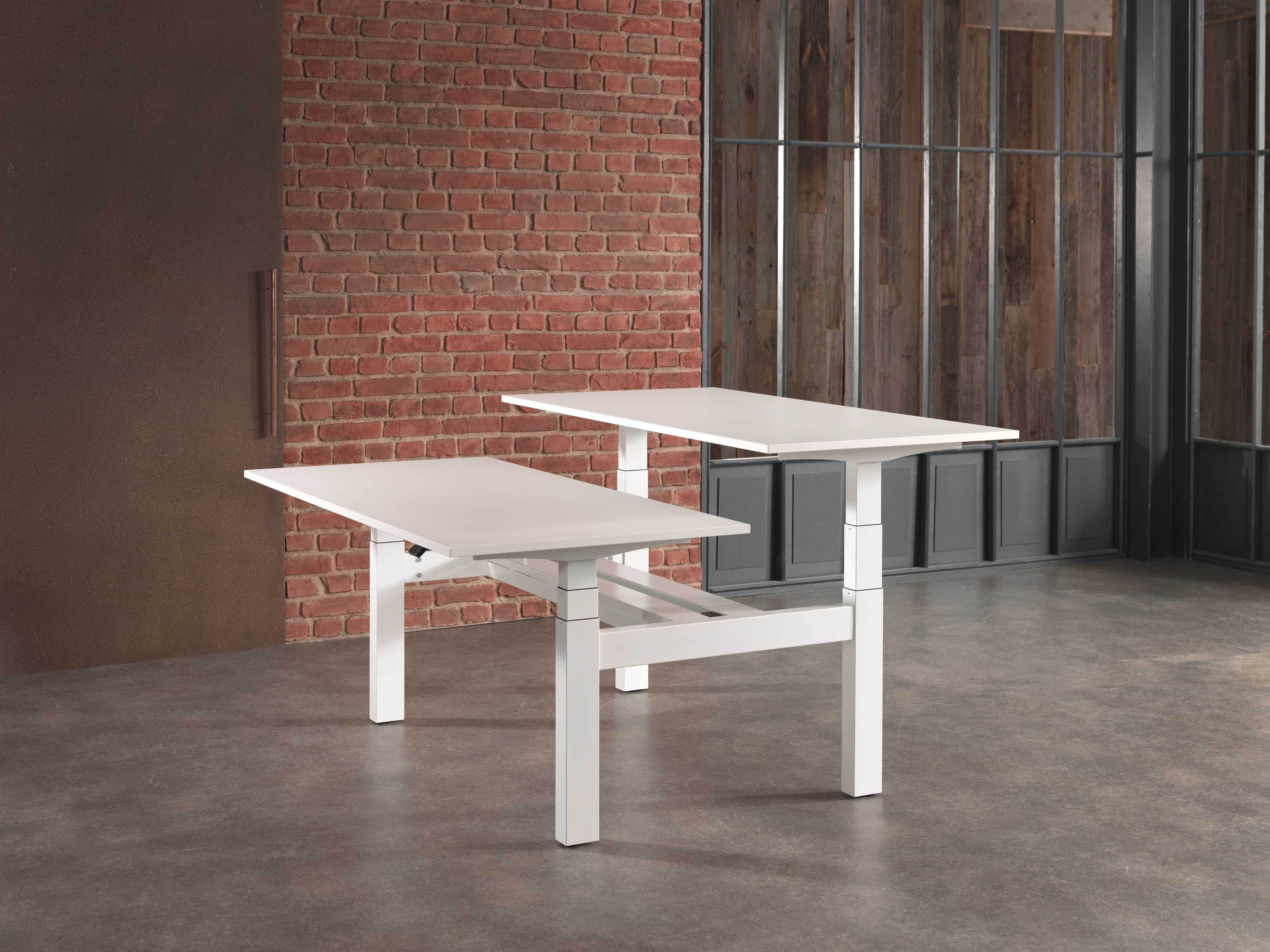 Der 2-motorige Elektroantrieb bringt jeweils eine Tischplatte mit einer Hubkapazität von 100 kg auf eine Höhe von 650 bis 1250 mm. Die insgesamt vier extrem leisen Motoren sind nicht sichtbar in der Traverse verbaut.