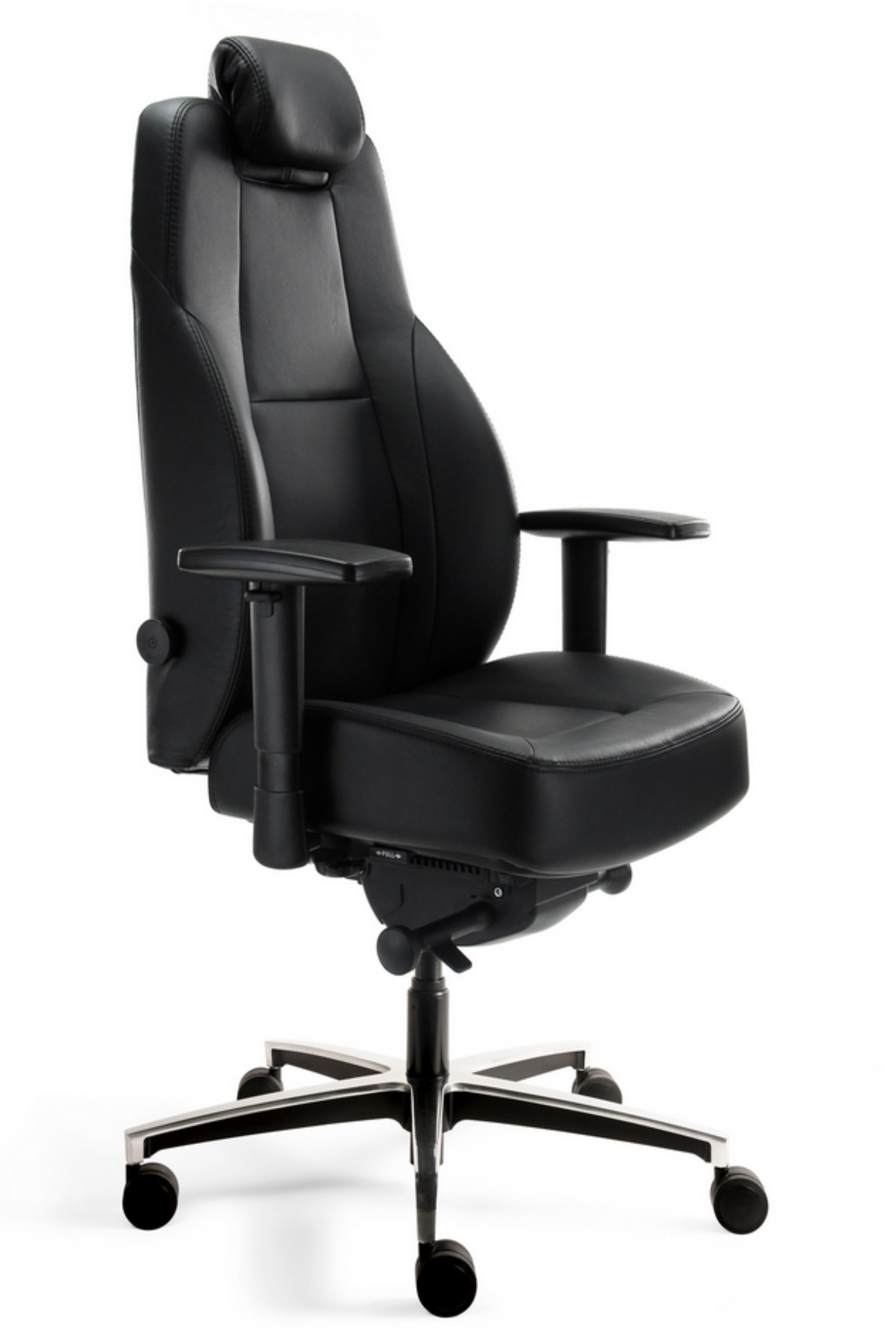 Dieser 24h-Bürodrehstuhl ist serienmäßig mit einer höhenverstellbaren, ergonomisch geformten, extra hohen