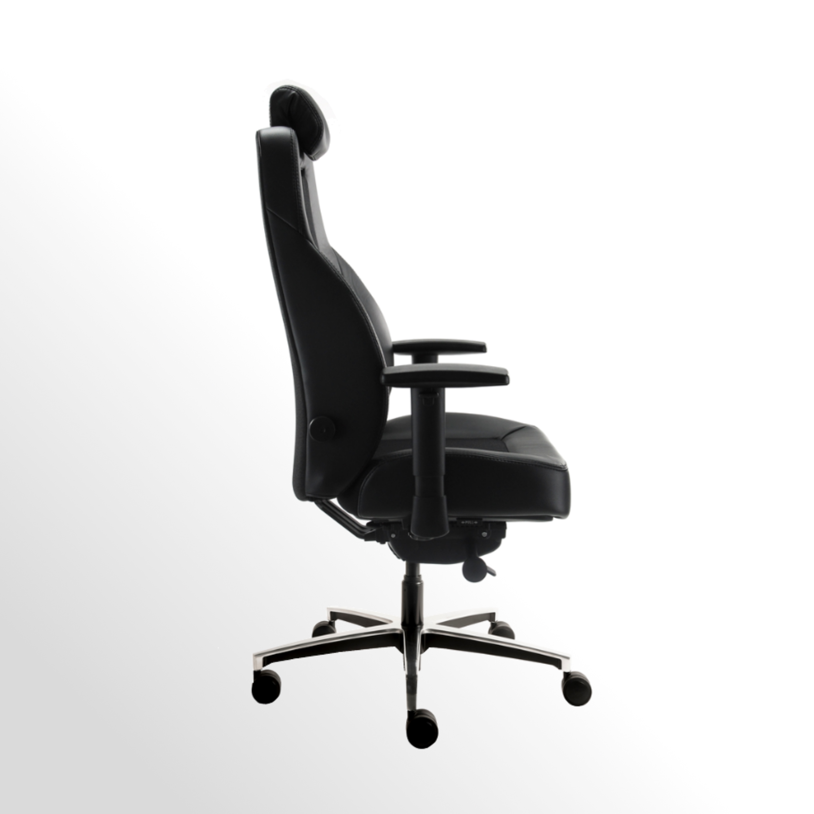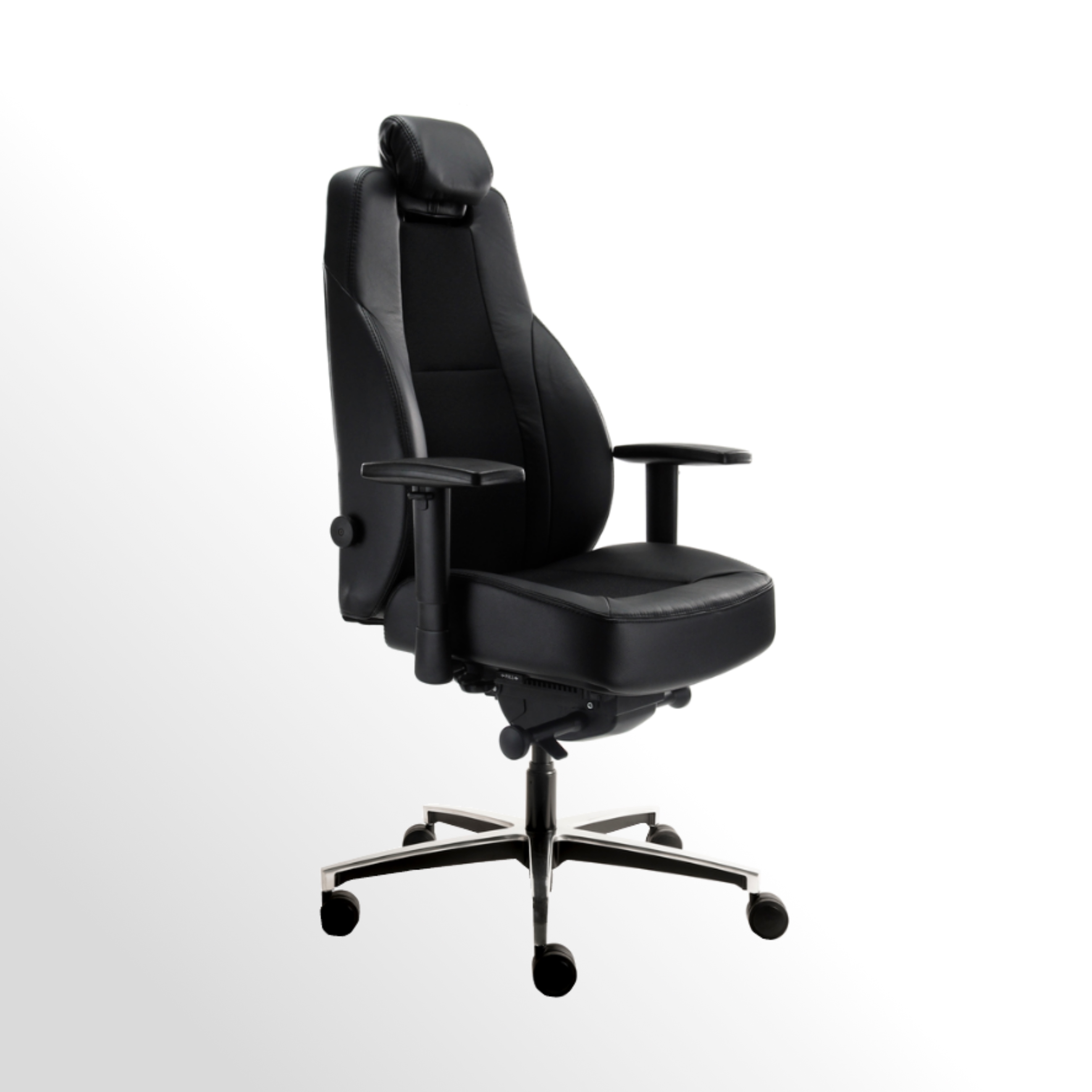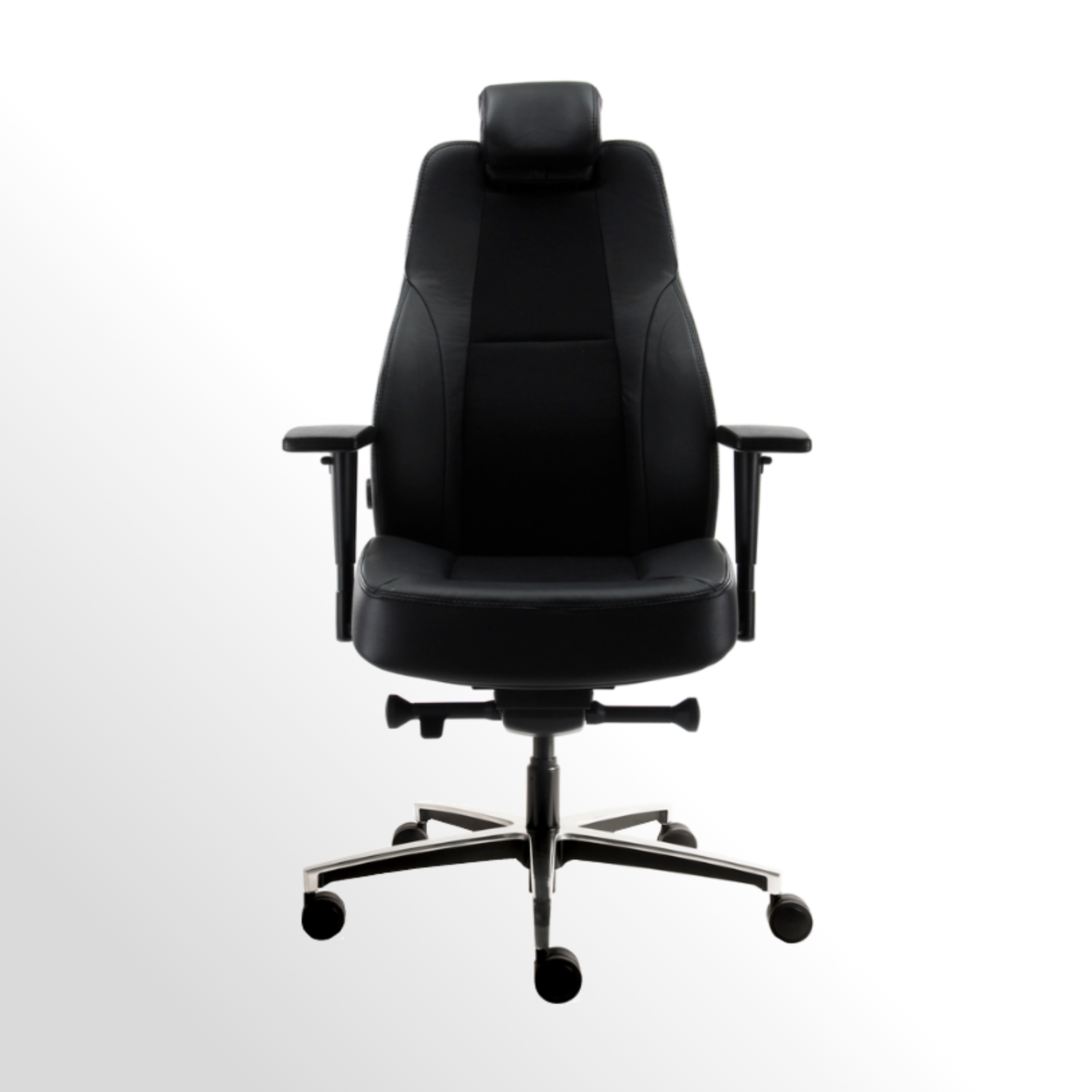Dieser 24h-Bürodrehstuhl ist serienmäßig mit einer höhenverstellbaren, ergonomisch geformten, extra hohen